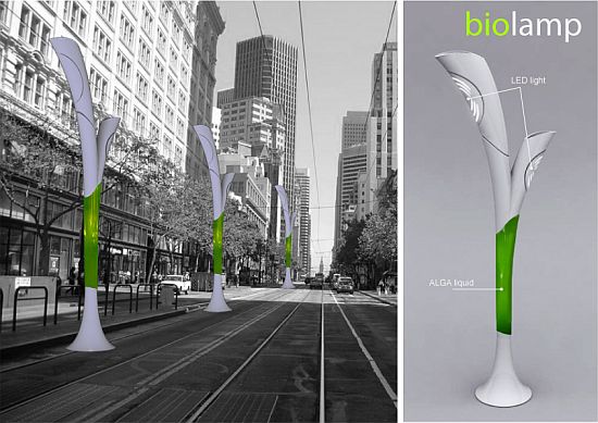 El invento, aún en etapa conceptual (por desgracia), fue diseñado por el húngaro Peter Horvath, Las lámparas succionarán todo el dióxido de carbono generado por la polución, el cual se convertirá en oxígeno gracias a un líquido conocido como ‘alga’ que es mezclado con agua. La Biolamp también producirá bio-combustible a partir del smog, y no lo usará únicamente en autos, sino que también le será útil para alimentarse a sí misma.
